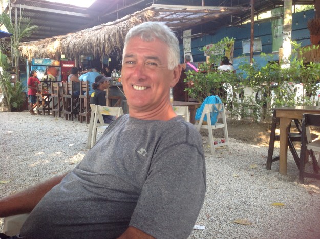 Étant donné que c’était le week-end, nous avons donc décidé de rester à Playa Del Coco et de nous y reposer. Et bien, alors que le samedi après-midi touchait à sa fin, le vent a de nouveau forci et avec lui, la mer qui s’est mise à balancer Wahkuna comme un bouchon. Cela nous a fait passer une deuxième soirée et nuit mouvementées et le lendemain, tous grognons, nous sommes partis pour la plage pour y trouver un endroit où prendre le petit-déjeuner et surfer sur la wifi. De nouveau, nous avons eu de la misère à accoster et Petit Bateau nous a tous les trois jetés méchamment dans l’eau, en réussissant en prime à faire introduire de l’eau dans le sac étanche mouillant nos iPads. Alors que la matinée avançait, le vent s’est de nouveau remis à souffler. Nous avons essayé en vain de revenir au bateau mais faisant face à un vent trop fort, il a fallu rebrousser chemin et passer le reste de l’après-midi dans une pizzeria, sur la plage, à faire la conversation avec les locaux. Pas trop mal tout de même. C’était dimanche après-midi et les écrans diffusaient un match de football européen dans lequel un des gardiens de but était du Costa Rica. Ici, on dit qu’il est Tico, un diminutif pour qualifier une personne venant du Costa Rica. Je pense que mes parents se sont amusés autant que moi car ils ont fini par prendre part aux applaudissements. En fin de journée que nous avons enfin pu rentrer et exténués nous nous sommes tous les trois endormis comme des bébés.