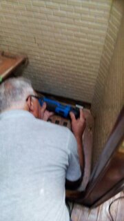 Rebuilding the panel of the head Getting rid of the rotten woodShower stall ready to be tilesShower stall tiled…as well as the toilet platformLooking much better