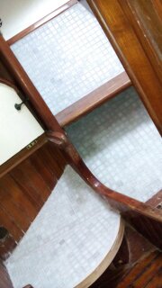 Inside, the work continued and Dad attacked the head, rebuilding and tiling both the toilet platform and the shower stall. Dad removed all of the 38 year old head plumbing and upon inspection Mum asked him: Why is there a hose within the head hose? To which Dad answered: there is no hose within the hose, it is just the blind up of the crystals from the liquids!!!!!!!!!!!!!!!!!!!!!!!!!!!!!!!! SUPER DISTGUSTING. Mum and Dad drove home that night with all of the window from the car opened ( even though it was raining) as the disgusting smell from Dad’s clothing was so bad. Mum took over the head completing the grouting, applying four coats of paint after stripping and sanding each walls and sanding and varnishing the wood. At least there was a sense of completion once that small section of the interior was done. All there needs to be installed now is the new toilet and some taps. Hopefully a small job, lol!!!