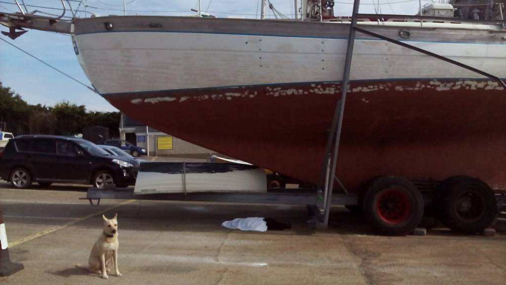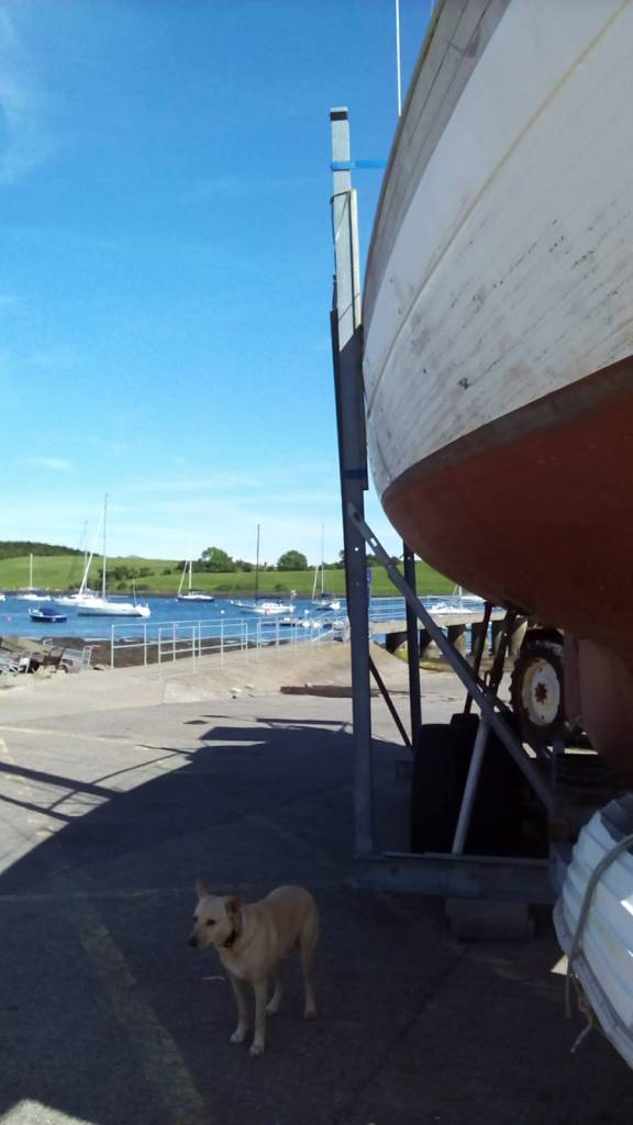 J’ai un peu laissé mon blog de côté ces derniers temps, car j’ai été vraiment occupé par ma supervision de la rénovation de Wakhuna. Mes humains ont travaillé d’arrache pied, jour après jour dans le port à sec du Ringhaddy Cruising Club afin de remettre le bateau en état. Moi, j’ai dû m’efforcer à séduire tous les membres du club, qu’ils aient deux ou quatre pattes et j’avais du boulot.