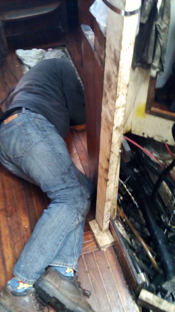 Another boat yoga moment….. to improve the chain locker.