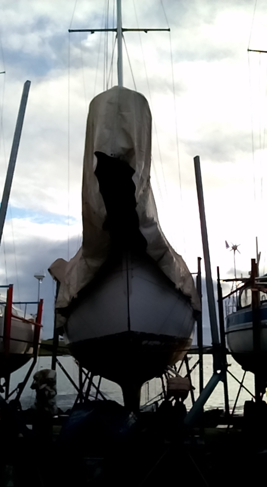 Mum attacked the hull below the water line to get all of the antifouling smoothed out before rerapplying, sometime next spring, a fresh coat of antifouling. She repaired the rudder and started chasing two wee stubborned leaks on the starboard side. Inside, she attacked the berths project, sanding all of the teak back and cleaning the old paint out in both the V-berth and the aft-berth. She applied again a second coat of Woodskin oil on all of the outside teak deck. She also worked on the uphostery, completing the cockpit cushions and took online courses to made a cockpit enclosure.